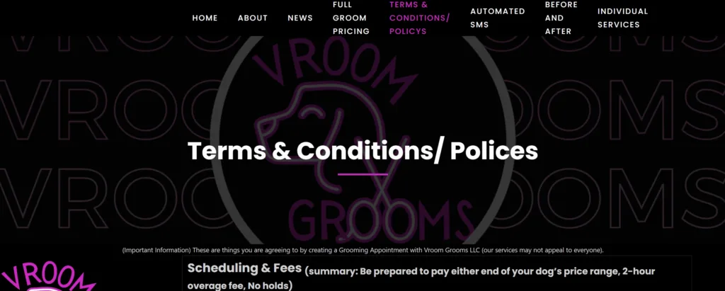 These are things you are agreeing to by creating a grooming appointment with us, be sure to give it a read! Vroomgrooms.com