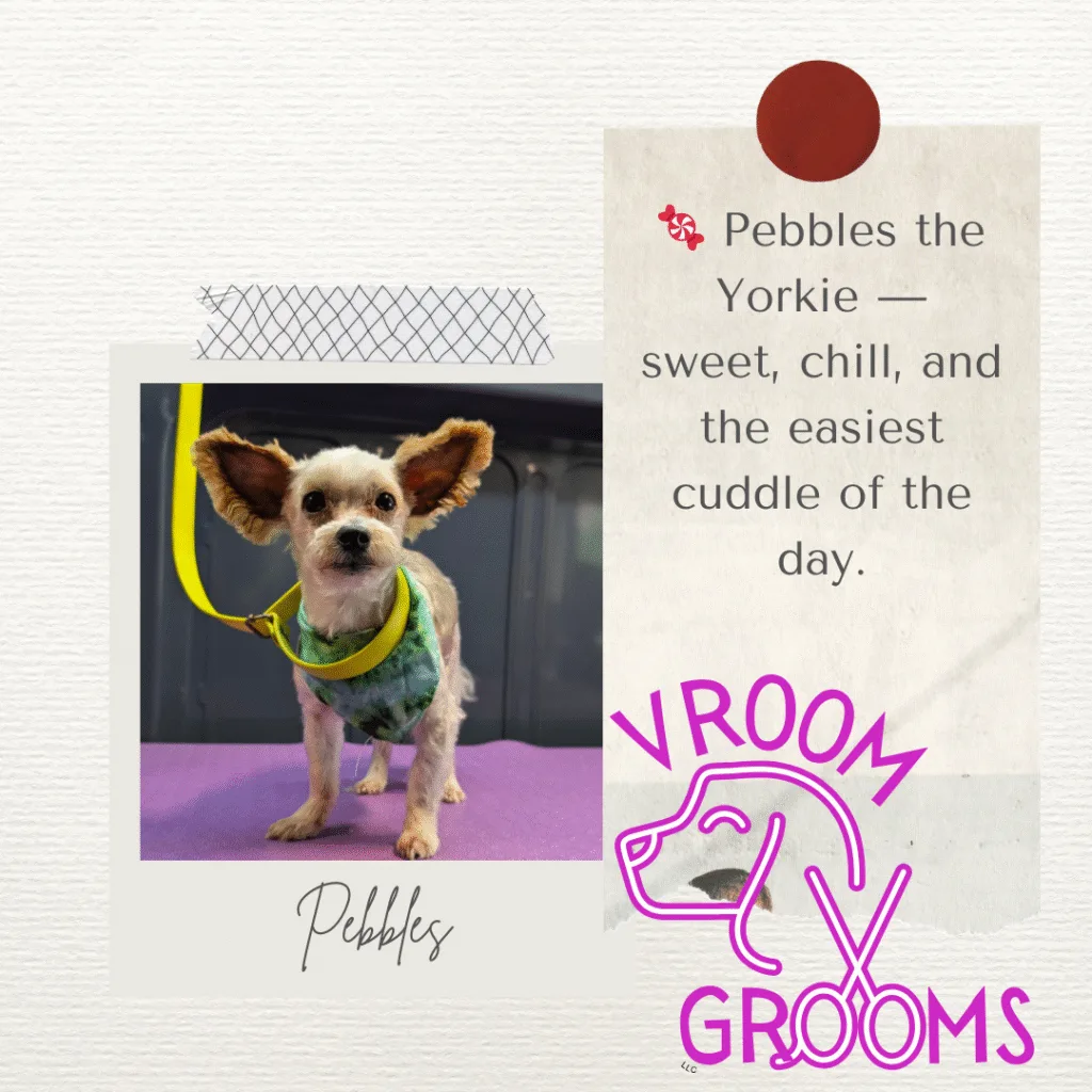 Pebbles floated into the salon like a little cloud of calm. This Yorkie is the definition of chill—no fuss, no drama, just pure sweetness. She sat patiently, gave us her trust, and let the grooming magic happen. Her silky coat and gentle demeanor made her an absolute joy to work with. Pebbles reminded us that sometimes, the smallest dogs carry the biggest hearts.