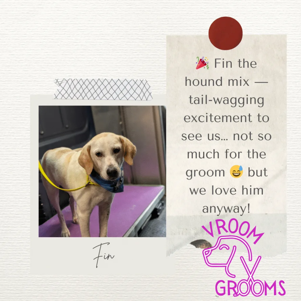 Fin is always thrilled to see us—tail wagging, body wiggling, full of joy. But when the clippers come out, his enthusiasm takes a little dip. Grooming isn’t his favorite part of the visit, but his loyalty and excitement to be here never waver. We take our time with Fin, giving him breaks and belly rubs between steps. His goofy grin and soulful eyes make every moment worth it.