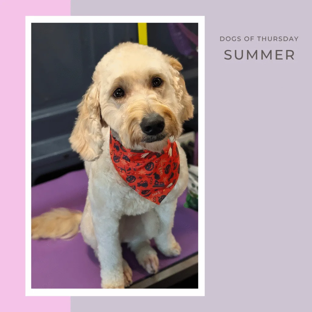 Summer is sunshine in doodle form. Her energy? Pure puppy delight. From the moment she hopped into the van, she was ready to party—tail wagging, paws dancing, and eyes sparkling. But the real magic happened during the dryer session, when she melted into Nicole’s arms for a cuddle break. That mix of excitement and trust? That’s the sweet spot we live for.