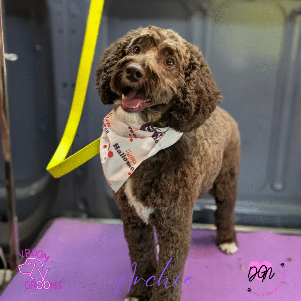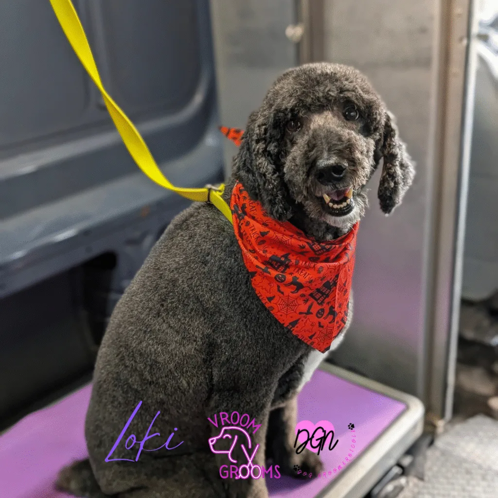 Today’s trio brings the fluff, the flair, and the full-body wiggles. Meet Scarlette and Archie, two doodles with hearts as big as their curls, and Loki, a standard poodle with a regal strut and a mischievous twinkle. Together, they turned the grooming van into a mobile party—complete with synchronized tail wags and a chorus of happy snorts.