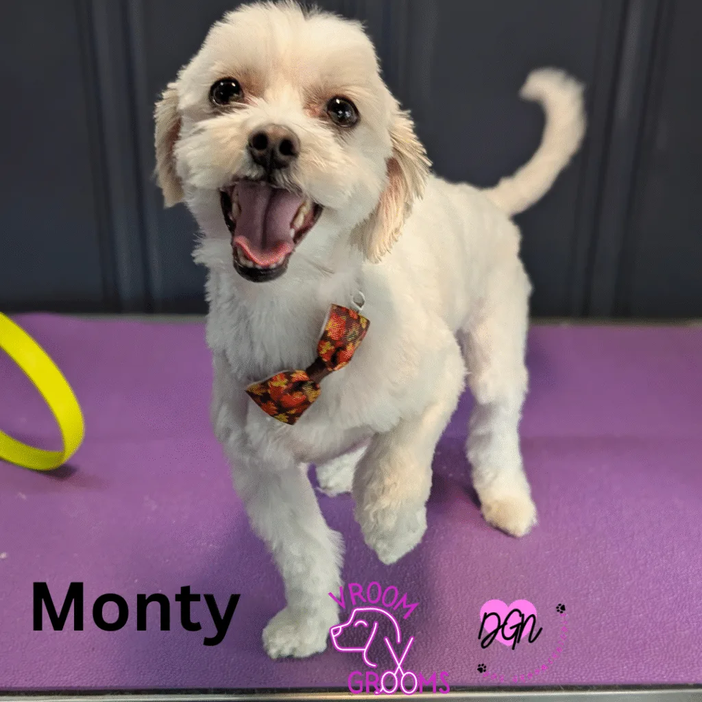 • Monty is a little cloud of fluff with a gentle soul and a face that could melt glaciers. He’s the kind of guy who makes you want to speak in baby talk and never stop petting.