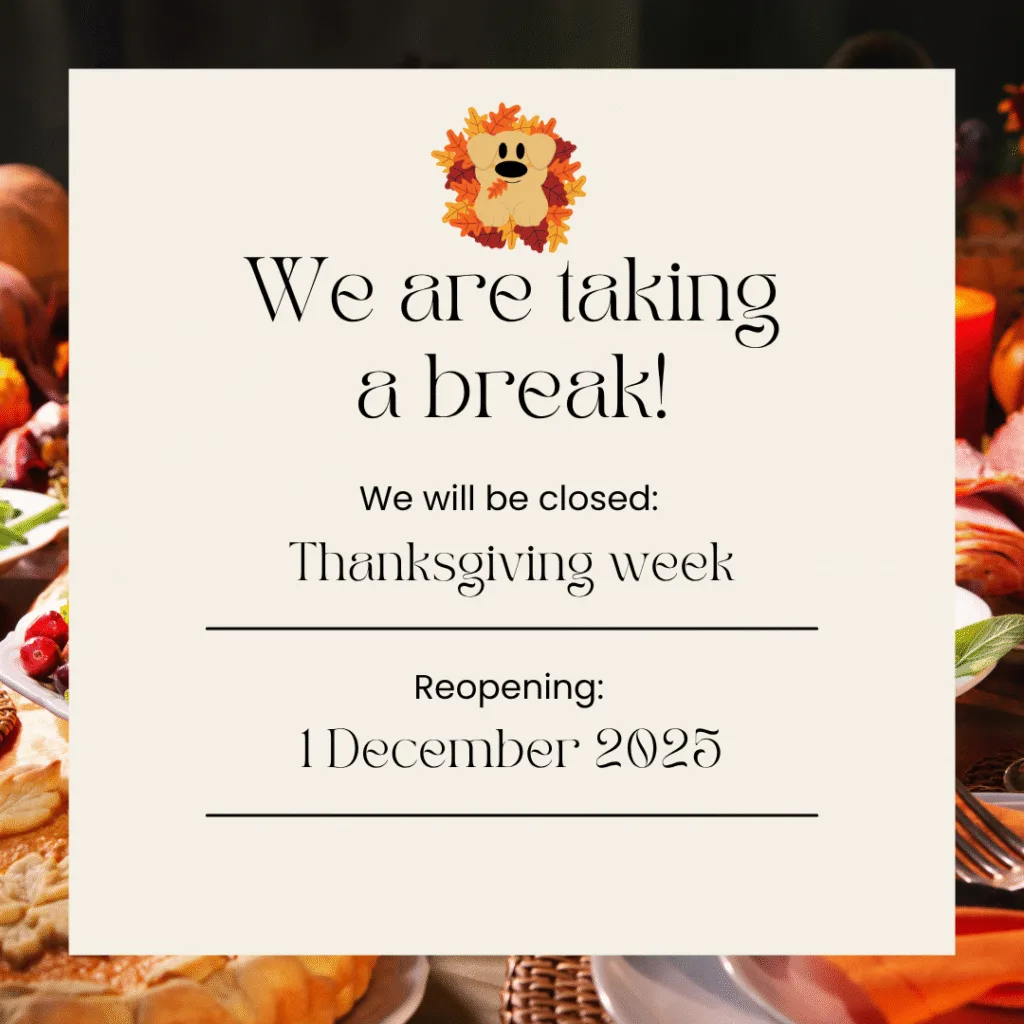 As the season of gratitude rolls in, we’re taking a short break to rest, recharge, and spend time with loved ones (both human and canine). Vroom Grooms LLC will be closed for Thanksgiving break starting [insert your last working day here], and we’ll be back in action on December 1st!