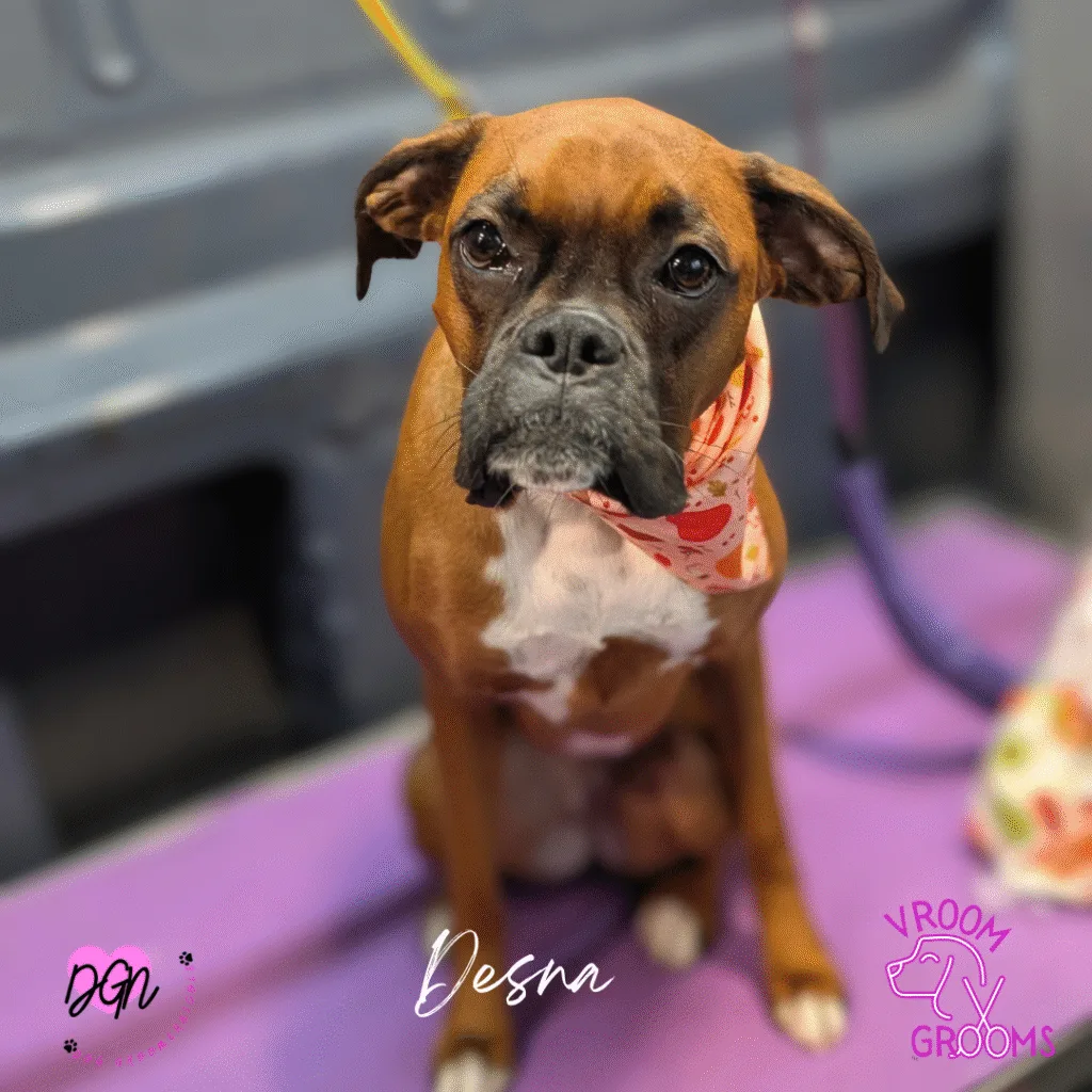 Desna continues to be a joy to groom—full of wiggles, kisses, and that signature boxer bounce. The dryer is still a bit spooky, but with some extra cuddles and reassurance, she powered through like a champ. We’re so proud of her progress!