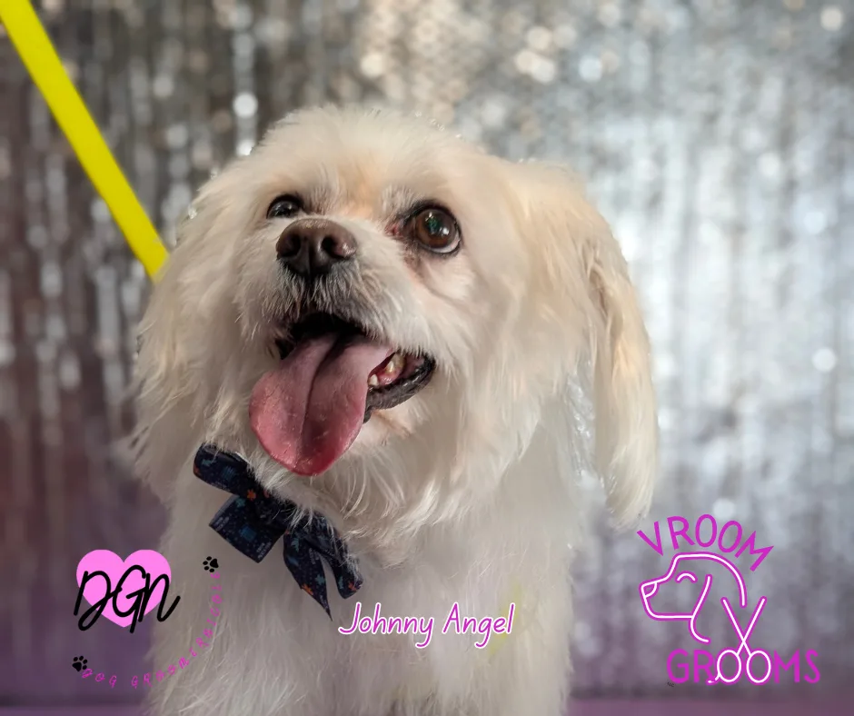 Johnny Angel may be shy at first, but once he warms up, his fabulous personality shines through. His silky coat and sweet demeanor made him look like a little star today. He reminded us that sometimes the quietest pups have the most dazzling sparkle.