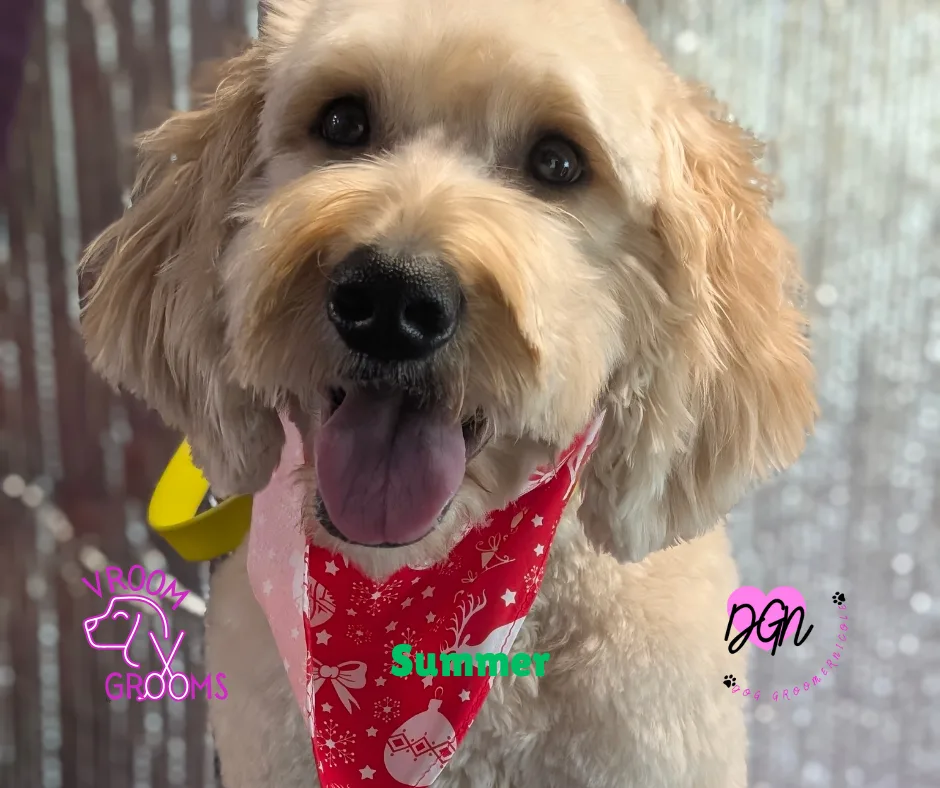 Summer the poodle mix bounced into the van today with her usual sparkle. She’s equal parts elegance and goofball, and she absolutely owned her grooming session with her trademark wiggles, grins, and “I’m ready for my close‑up” energy. A total day‑brightener.