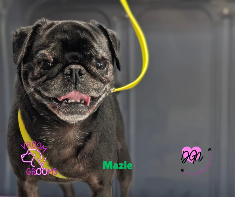 - Mazie, our adorable Pug, is all about the scratches, wiggles, and joyful little dance moves that make her impossible not to adore.