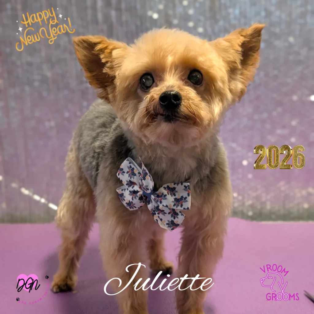 Miss Juliette, our lovely senior Yorkie lady, arrived looking as adorable as ever. She’s got that timeless charm — the kind of cute that only a seasoned little gal can pull off.