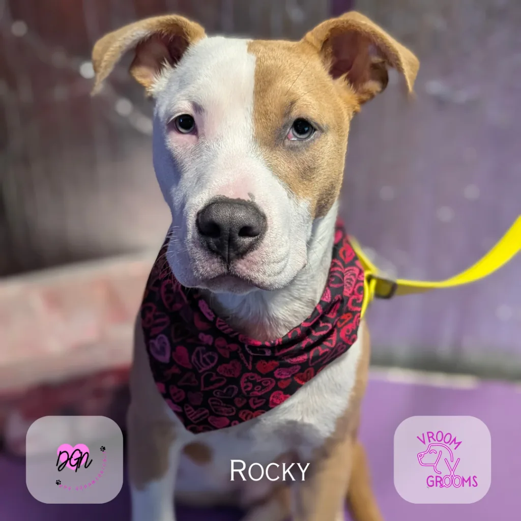 This was Rocky’s very first professional grooming appointment, and you’d think he’d been doing this for years. Full-body wiggles, nonstop enthusiasm, and instant friendship with his groomer. Rocky showed up ready to charm the world.
