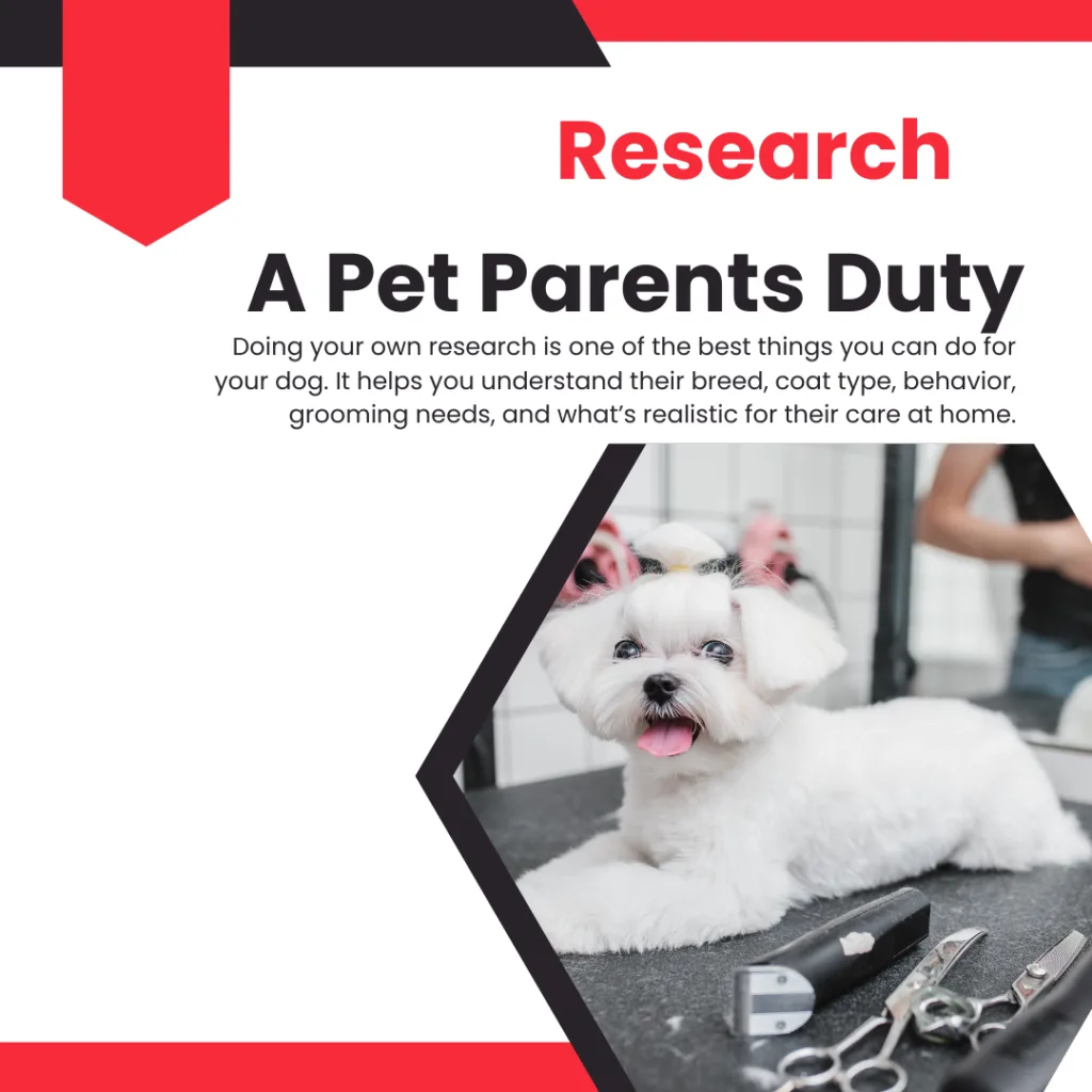 Breed, coat type, age, health, temperament, and lifestyle all affect what your dog needs. Research helps you understand the specifics of your dog, not just general advice.