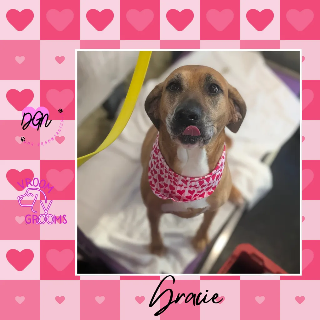 And then came Gracie, the cuddle champion of the day. This hound mix wasted no time claiming her groomer’s heart. She snuggled, leaned, and soaked up every bit of affection she could get. Nicole enjoyed every second of her company—Gracie has that special kind of warmth that makes you feel lucky just to be in her presence.