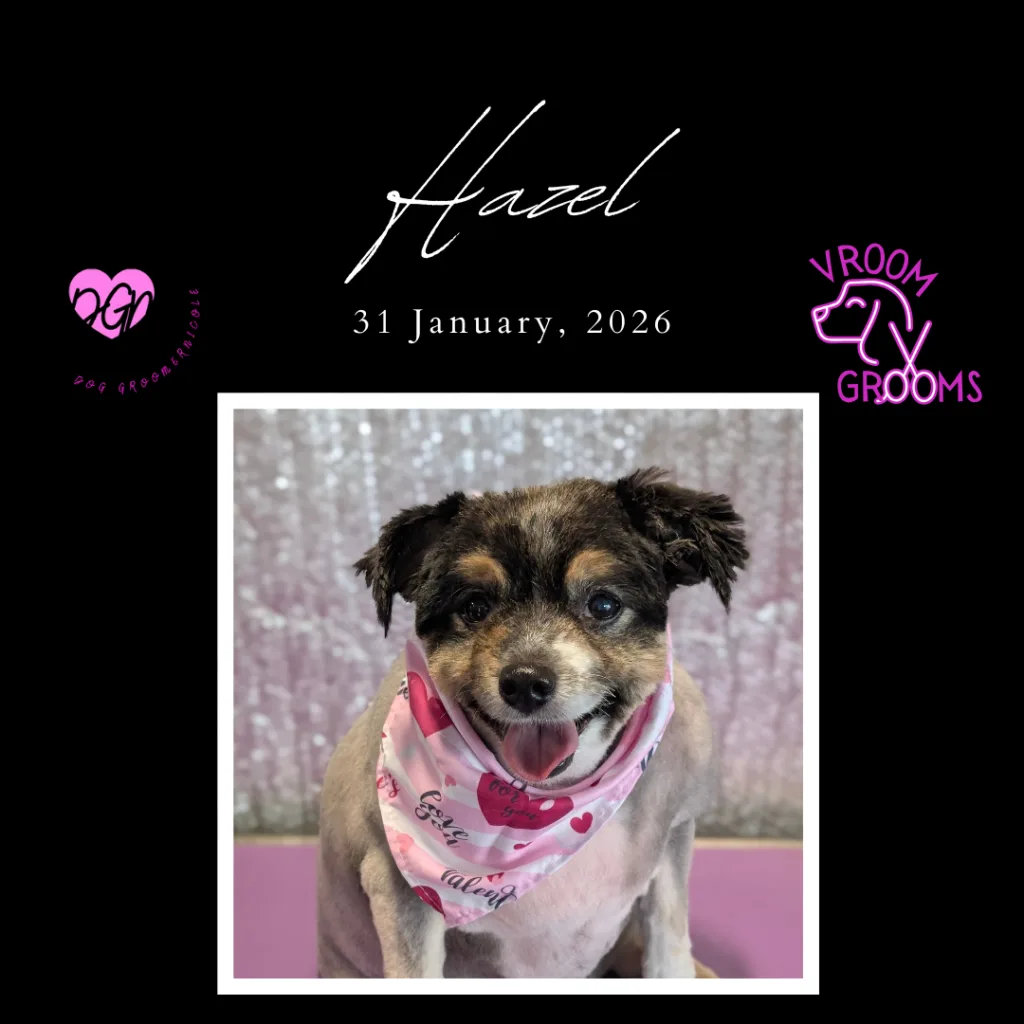 Next up was Hazel, the Pom who practically floated into the van with joy. This girl loves a good haircut, and she made sure we all knew it. Tail wagging, eyes sparkling, full-body wiggles—Hazel turned her grooming session into a celebration. She left looking extra fluffy and feeling extra proud of herself.