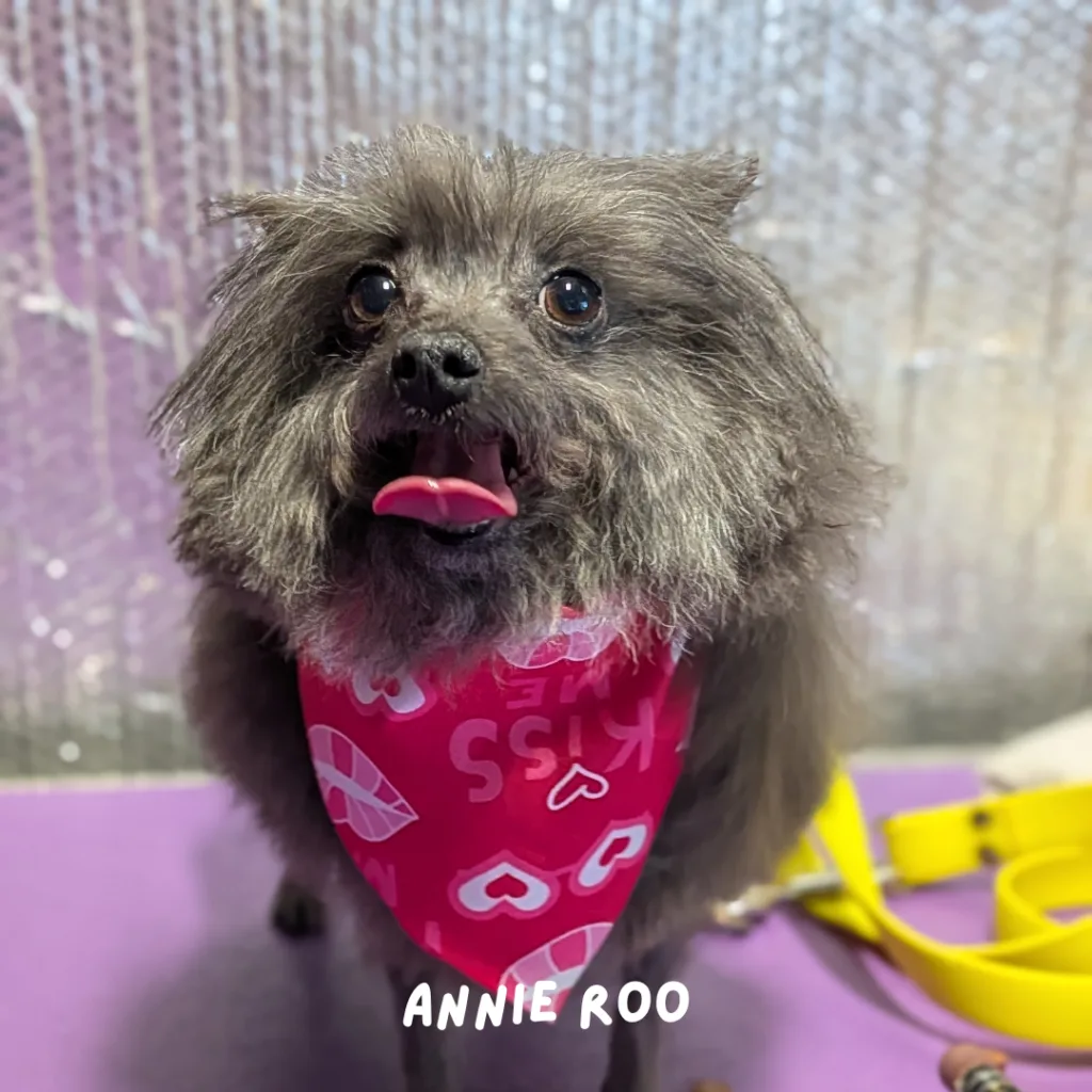 First up is Annie Roo, our tiny little mix with the biggest spirit. She may be small, but she radiates pure sunshine. Annie Roo is the kind of pup who melts you instantly—soft eyes, gentle wiggles, and a sweetness that just wraps around you like a hug. Grooming her feels like spending time with a tiny best friend who just wants to be loved and included in everything.
