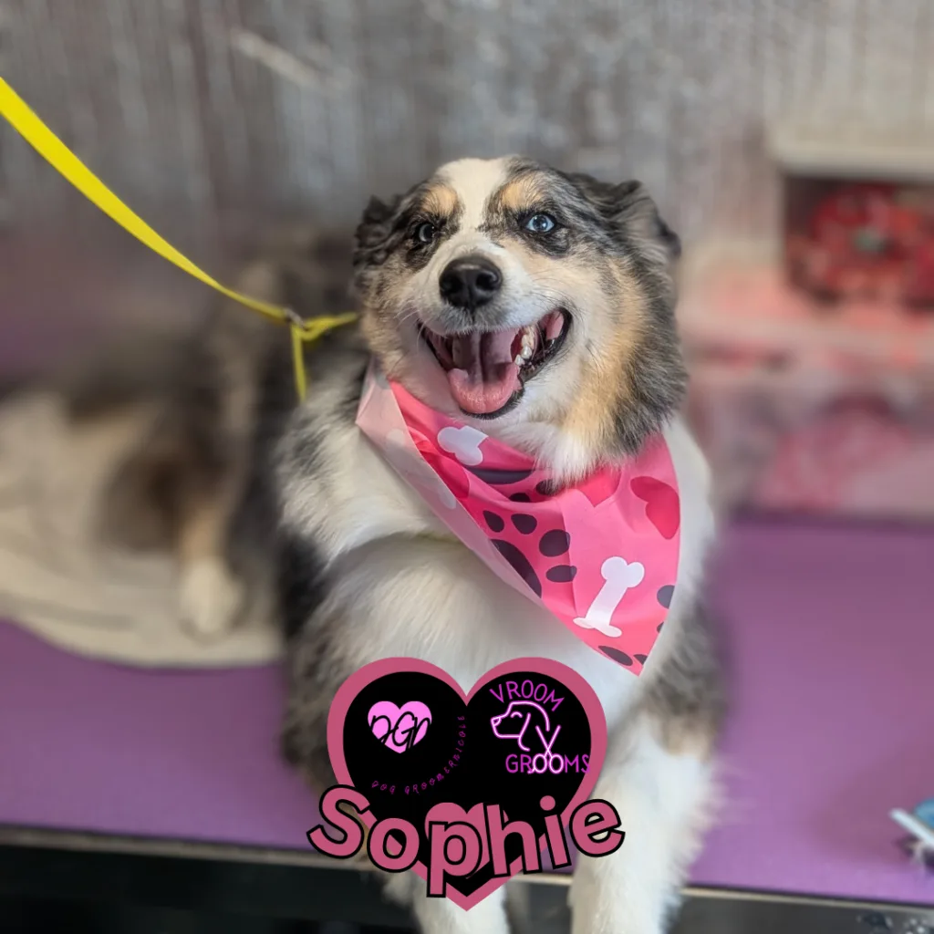 Next up was Sophie, the Australian shepherd who could charm anyone within a five‑mile radius. She was such a doll from start to finish—soft eyes, gentle energy, and that classic Aussie intelligence shining through the whole time. She made the grooming process feel like a breeze, and honestly, she could teach a masterclass on being a perfect guest.