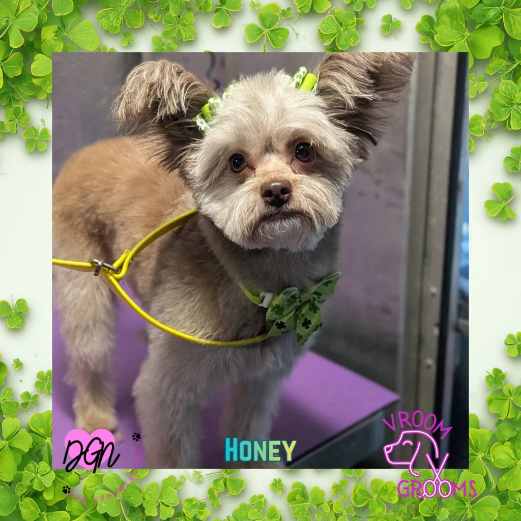 Rounding out the day is Honey, the little lovebug with ears for days. She’s gentle, affectionate, and has that soft, soulful presence that makes you want to scoop her up and never put her down. Her sweetness fills the whole grooming van, and those expressive ears tell her whole story before she even makes a sound.