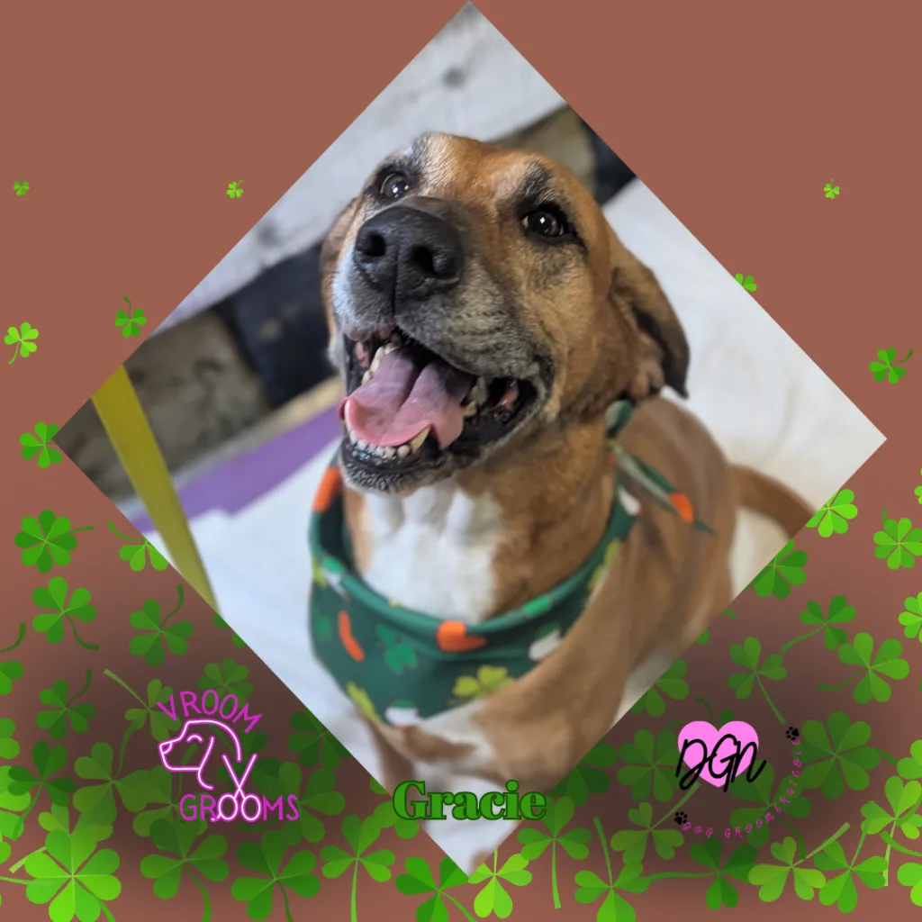 Next up was Gracie the hound mix, a soft-hearted lady with the calmest, kindest presence. Gracie leans right in for her cuddles, offering plenty of kisses along the way. She’s the definition of a gentle soul, and her sweetness fills the whole van with warmth. Grooming her feels like spending time with an old friend who just loves being close.
