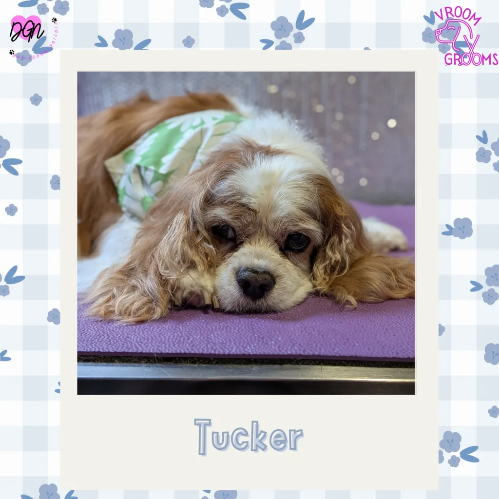 Tucker wrapped up the day with the most relatable mood: sleepy. This sweet boy was practically melting into the table, eyelids heavy, just waiting for his post-groom snooze. Soft, calm, and full of that classic Cavalier sweetness, he was the perfect cozy ending to the day.